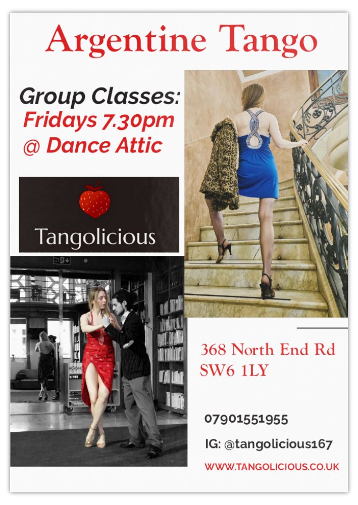 Join us at Dance Attic 368 North End Rd SW6 1LY – the classes are drop-In so there’s no need to book or bring a partner